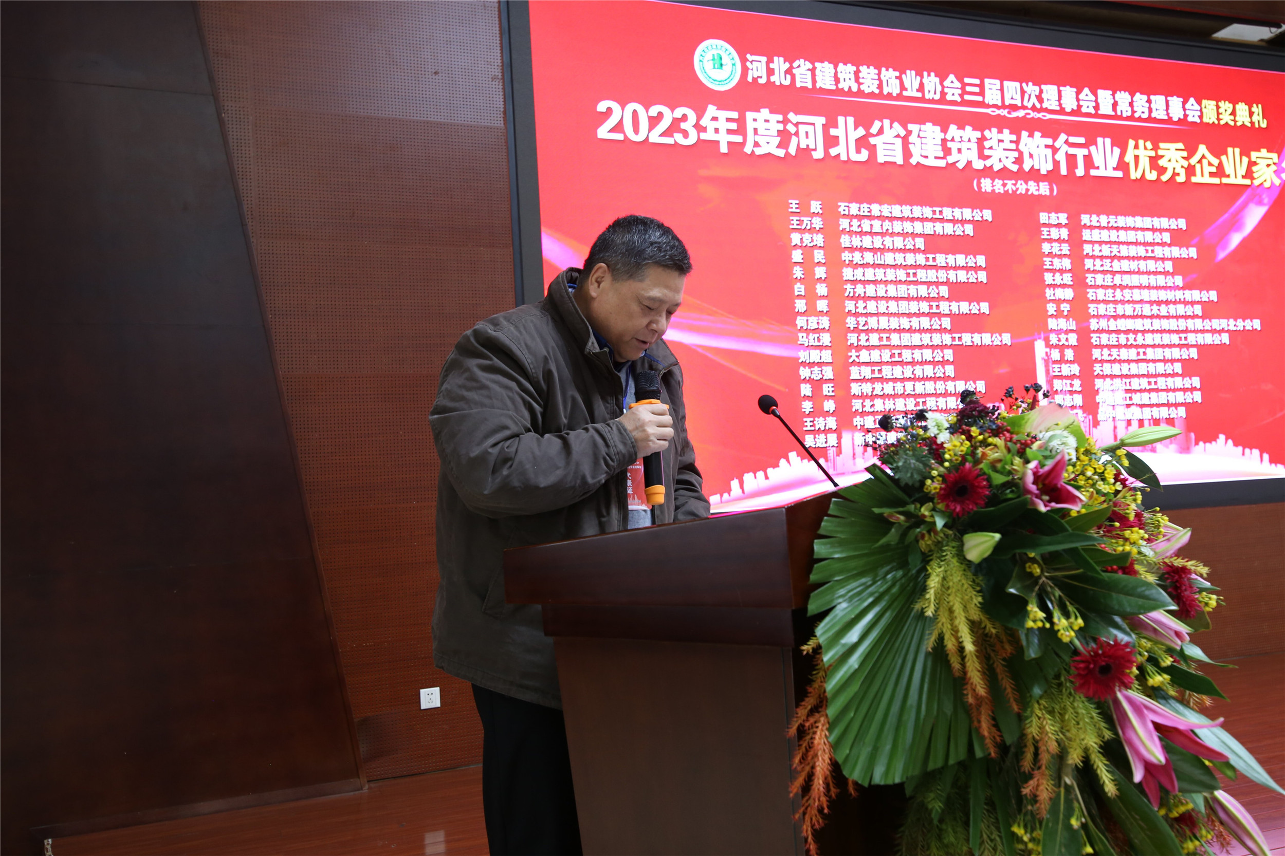 盛民宣讀《關(guān)于表彰2023年度河北省建筑裝飾行業(yè)優(yōu)秀企業(yè)家的決定》
